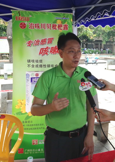 活動(dòng)共設(shè)11個(gè)攤位,有專家義診、過期藥品回收、群眾咨詢及投訴受理、鑒別真假保健品化妝品、辨別真假食品藥品等。期間,白云山潘高壽藥業(yè)副總經(jīng)理盧其福接受了番禺廣電的采訪,盧總圍繞“安全用藥 關(guān)注健康”的主題繪聲繪色地介紹了傳統(tǒng)中藥文化及潘高壽的企業(yè)文化和產(chǎn)品特色,并解說了使用藥品的用法用量及注意事項(xiàng)。