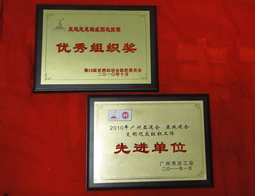 領(lǐng)導(dǎo)的鼓勵激發(fā)起“廣藥潘高壽志愿者助威團(tuán)”全體人員的進(jìn)一步熱情,團(tuán)員加倍努力。在10月23、24日的晉級比賽中,“廣藥潘高壽志愿者助威團(tuán)”在“機關(guān)企事業(yè)單位版塊志愿助威團(tuán)晉級賽”中,在全省近100支團(tuán)隊中獲得第8名的好成績,并獲亞組委頒發(fā)“最佳組織獎”榮譽,新年伊始,又再度獲得廣州市工會亞運會頒授“亞運亞殘運文明觀眾組織先進(jìn)集體”獎。