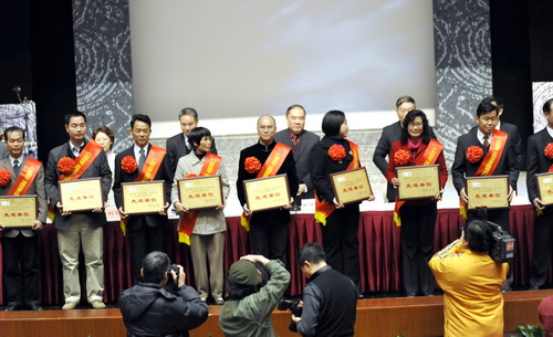 領(lǐng)獎臺上黃伯強主席接受頒獎