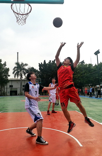 隨著一聲哨響,李錦云主席為潘高壽公司與拜迪公司的首場籃球聯(lián)誼賽開球,高高拋起的籃球點燃了參賽隊員們的激情,拉開了籃球賽的帷幕。